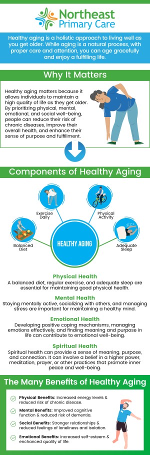 At Northeast Primary Care, we believe in a comprehensive, patient-centered approach to healthcare and understand the complexities of aging. Our dedicated team is committed to assisting patients as they navigate through this natural process, providing education and support along the way.