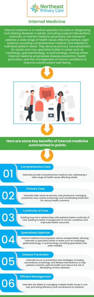 Patients may need to see separate internists depending on their medical conditions, which can be expensive and time-consuming. All internists provide focused, specific care, which can benefit patients of all health levels.